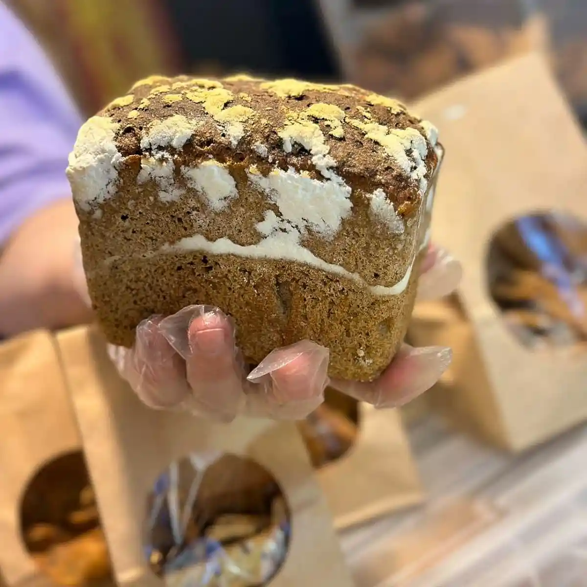 Состав: вода, мука ржаная обдирная, закваска (мука+вода), соль морская, сахар. Вес +/- 450 гр.