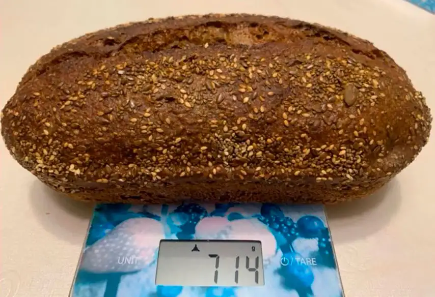 Состав: 1. Мука 2 сорта 2. Ржаной солод 3. Вода очищенная 4. Закваска «Левито мадре» 5. Соль 6. Кунжут и всё остальное по желанию Вес (ориентировочно): 700 г