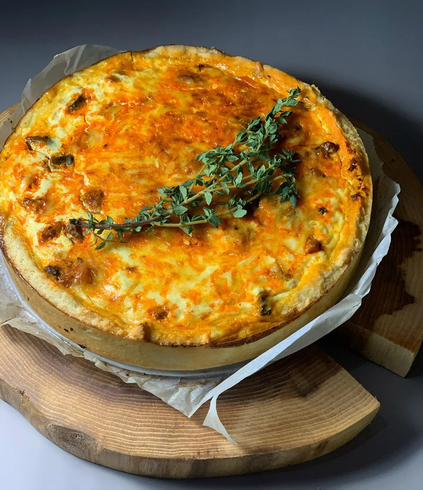 Песочное тесто с сочной курицей, шампиньонами и сливками