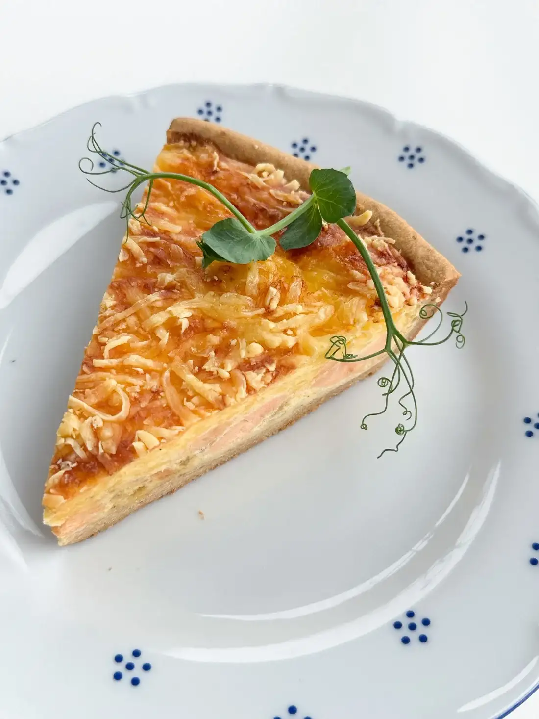 Мука, масло сливочное, яйцо, сахар, соль, перец черный молотый, филе лосося, лук репчатый, сливки, сыр твердый сычужный, орех мускатный. Пищевая ценность на 100 гр продукта (среднее значение): к/б/ж/у — 239/13/15/17,7