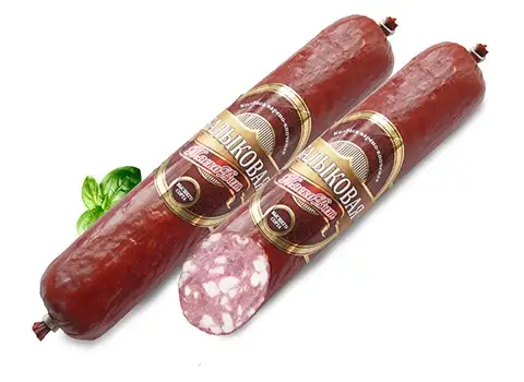 Срок годности: 40 суток Состав: свинина, мясная обрезь, диафрагма свиные, говяжьи, вода питьевая, шпик, соль йодированная, чеснок, экстракты специй (паприка, перец, мускат, кориандр, тмин, имбирь, чили). Возможно наличие компонентов яиц, глютена, сои, молока, горчицы, сельдерея, кунжута и продуктов их переработки Пищевая ценность на 100 г продукта (средние значения): белки — 16,3 г, жиры — 22,8 г. Энергетическая ценность — 265 ккал/1121 кДж.