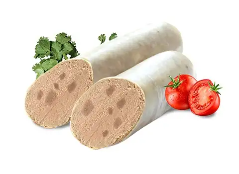 Срок годности: 27 суток Состав: бульон мясной жидкий, шкурка свиная, мясо голов свиное, печень говяжья, свиная, крупа манная, соль йодированная, сыворотка молочная сухая, клетчатка пшеничная, сахар, экстракты перца чёрного, перца душистого, ореха мускатного. Возможно наличие компонентов яиц, глютена, сои, молока, горчицы, сельдерея, кунжута и продуктов их переработки. Пищевая ценность на 100 г продукта (средние значения): белки — 10 г, жиры — 18 г, углеводы — 5 г. Энергетическая ценность — 222 ккал/921 кДж.