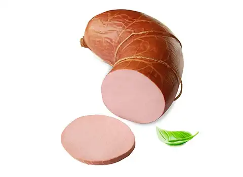 Срок годности:45 суток Состав: вода питьевая, свинина, мясная оборезь, диафрагма свиная, жир-сырец говяжий, телятина, соединительная ткань говяжья, сыворотка молочная сухая, соль йодированная, сахар, олеорезины (черного перца, душистого перца, мускатного ореха), чеснок сушеный, смесь натуральных экстрактов специй и пряностей (перец черный, мускатный орех, кардамон), клетчатка пшеничная. Возможно наличие компонентов яиц, глютена, сои, молока, горчицы, сельдерея, кунжута и продуктов их переработки. Пищевая ценность на 100 г продукта (средние значения): белки — 8,1 г; жиры — 25,8 г; углеводы — 1,4 г; Энергетическая ценность — 268 ккал / 1116 кДж.