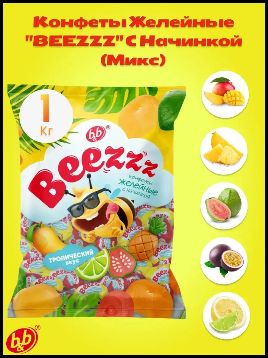 Cумма минимального заказа: 50 BYN. Срок годности: 12 месяцев. Вкус: ананас; манго; маракуйя. Побалуйте себя и своих близких вкусными и яркими желейными конфетами от B&B кондитерской фабрики! В каждой упаковке 1 кг ассорти из жевательных конфет с жидкой, желейной и мармеладной начинкой. Вы найдете тропический микс из ананаса, манго, гуавы, лимон (лайм) и маракуйи, который подарит вам настоящий взрыв вкуса. Конфеты B&B не содержат ГМО и глютена, что делает их идеальным выбором для тех, кто заботится о своем здоровье.