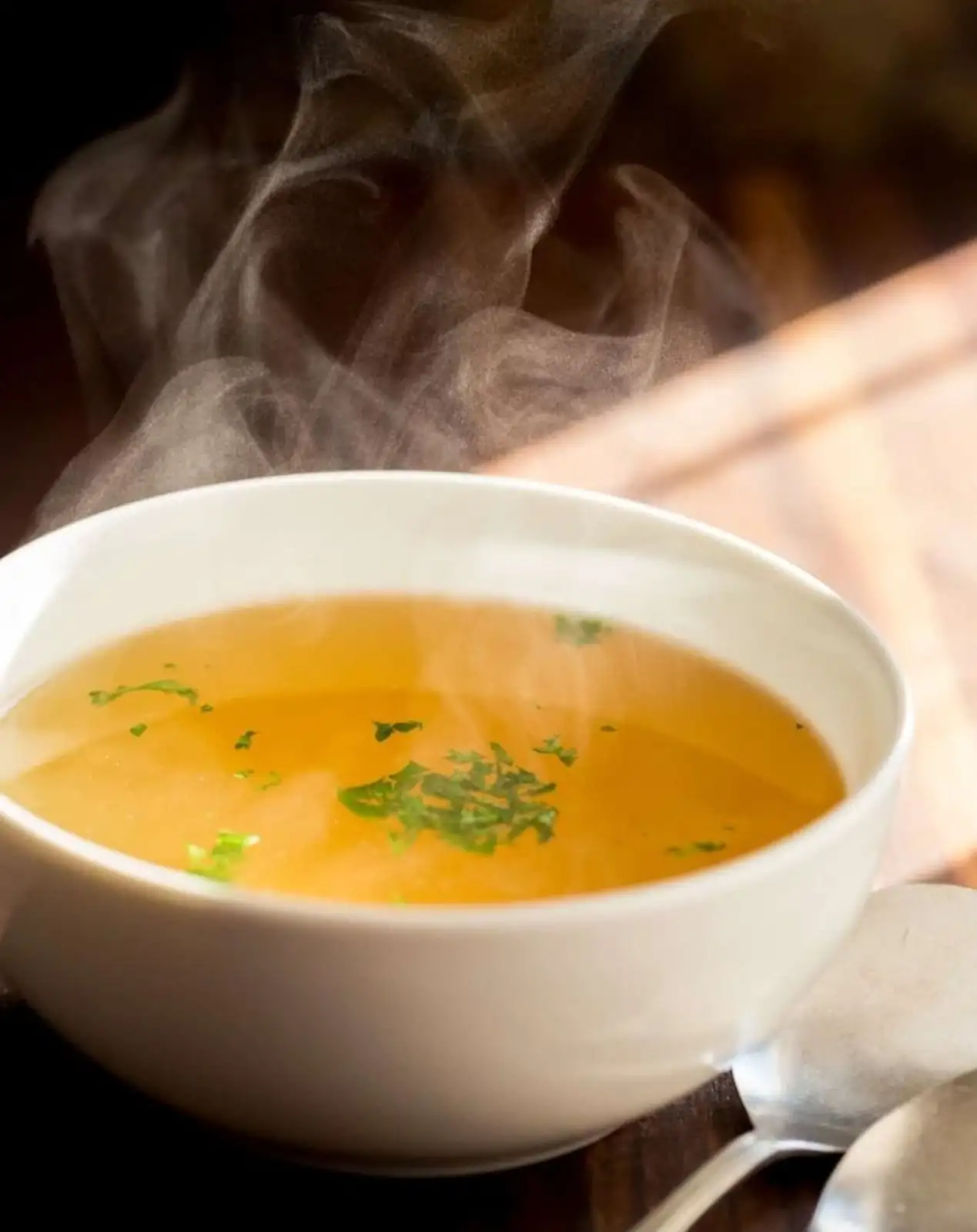 Костный бульон из собственного фермерского сырья: — Индейка — Курица — Кролик Упаковка: стеклянная банка.