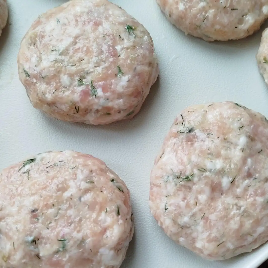 Состав: фарш свинина + курица, лук пассерованный, укроп свежий, чеснок сушёный, масло растительное, яйцо, хлеб пшеничный, соль, специи. Без панировки. 800 г