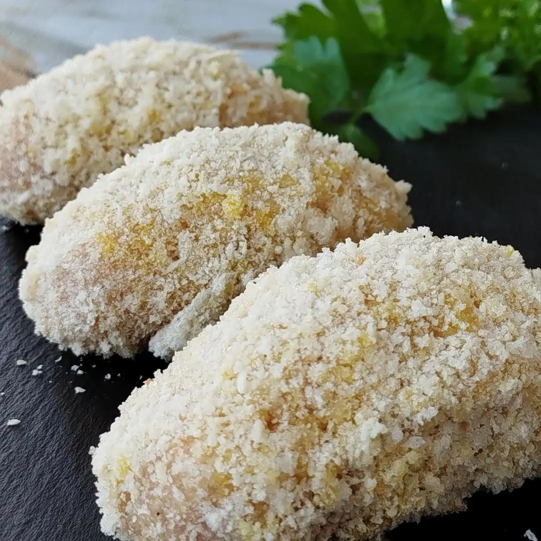 Куриная котлета, внутри начинка из смеси сыра и сливочного масла, панировка из сухарей Панко