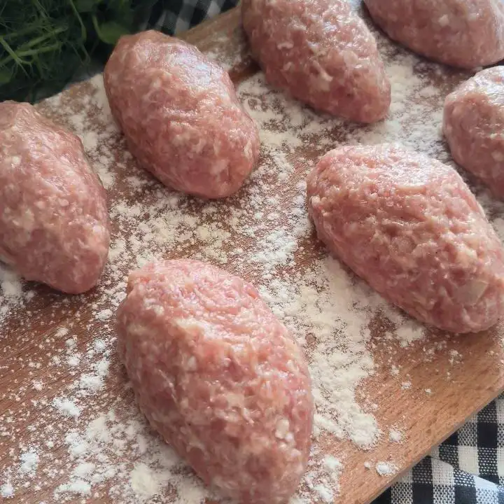 Состав: фарш курица+свинина, лук пассерованный, масло растительное, хлеб пшеничный, яйцо, соль, специи. Без панировки. 600 г