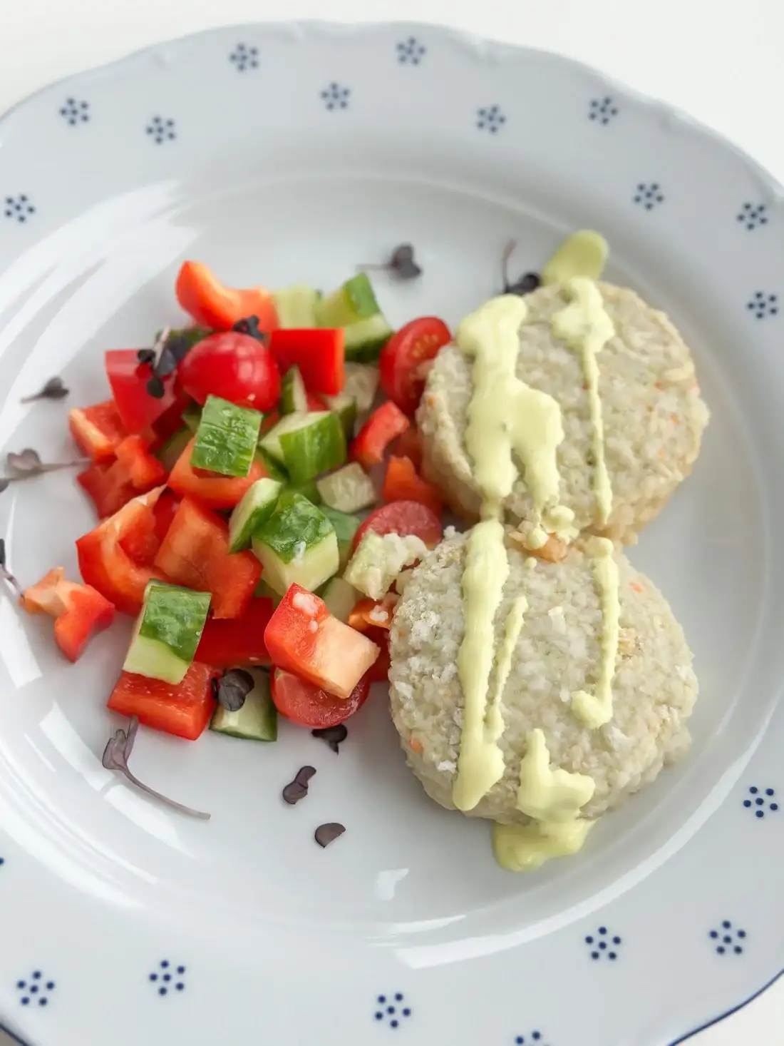 Филе индейки, капуста брокколи с/м, цветная капуста, лук пассированный, морковь пассированная, яйцо куриное, сливки, батон, Панко, перец черный молотый, соль пищевая.