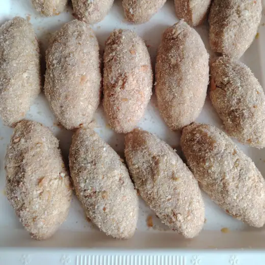 Куриное филе, масло сливочное, чеснок, зелень, яйца, сухарари панировочные.