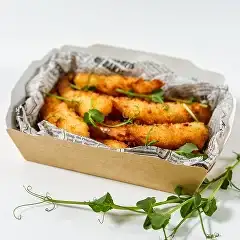 Нежные креветки в лёгком, хрустящем и воздушном кляре темпура. Имеют сочный сладковатый вкус морского деликатеса, дополненный хрустом оболочки. Идеальны в качестве самостоятельной горячей закуски, гармонично сочетаются с кисло-сладким, соевым или чесночным соусом.