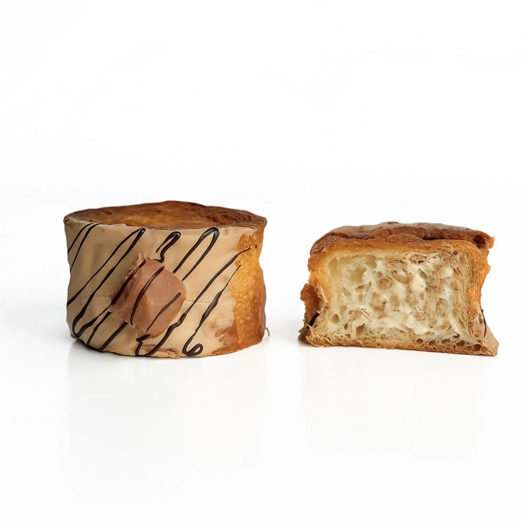 1 шт. — 125 г Тесто слоеное дрожжевое: Мука пшеничная Молоко 3,2% Дрожжи Масло сливочное 84% Соль Сахар Вода Глазурь: Белый и молочный шоколад Конфета «буэно»