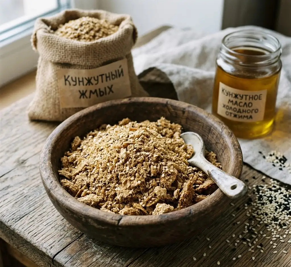 Жмых — это продукт получаемый после отжима масла на прессе Жмых менее калорийный чем орехи и семена. В процентном соотношении в нём больше белка и клетчатки, чем в самих орешках. Из орехов и семян отжимается примерно 50% масла, остальное остаётся в самом жмыхе. ✔️ Кунжутный жмых Вкус Востока. Какое получается из него печенье.....ммммм, пальчики оближешь. Салату придаст пикантный вкус. К тому же богат витаминами В1, В2, F, C, минералами, насыщенными жирными кислотами.
