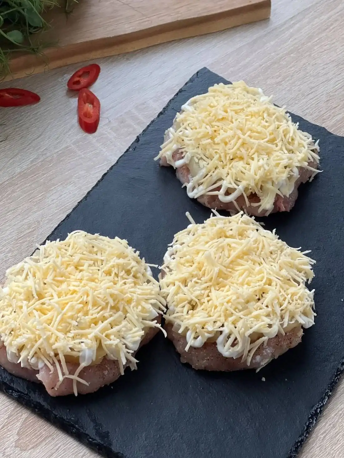 — Филе куриное — Соль — Специи — Паприка — Ананас консервированный — Майонез — Сыр