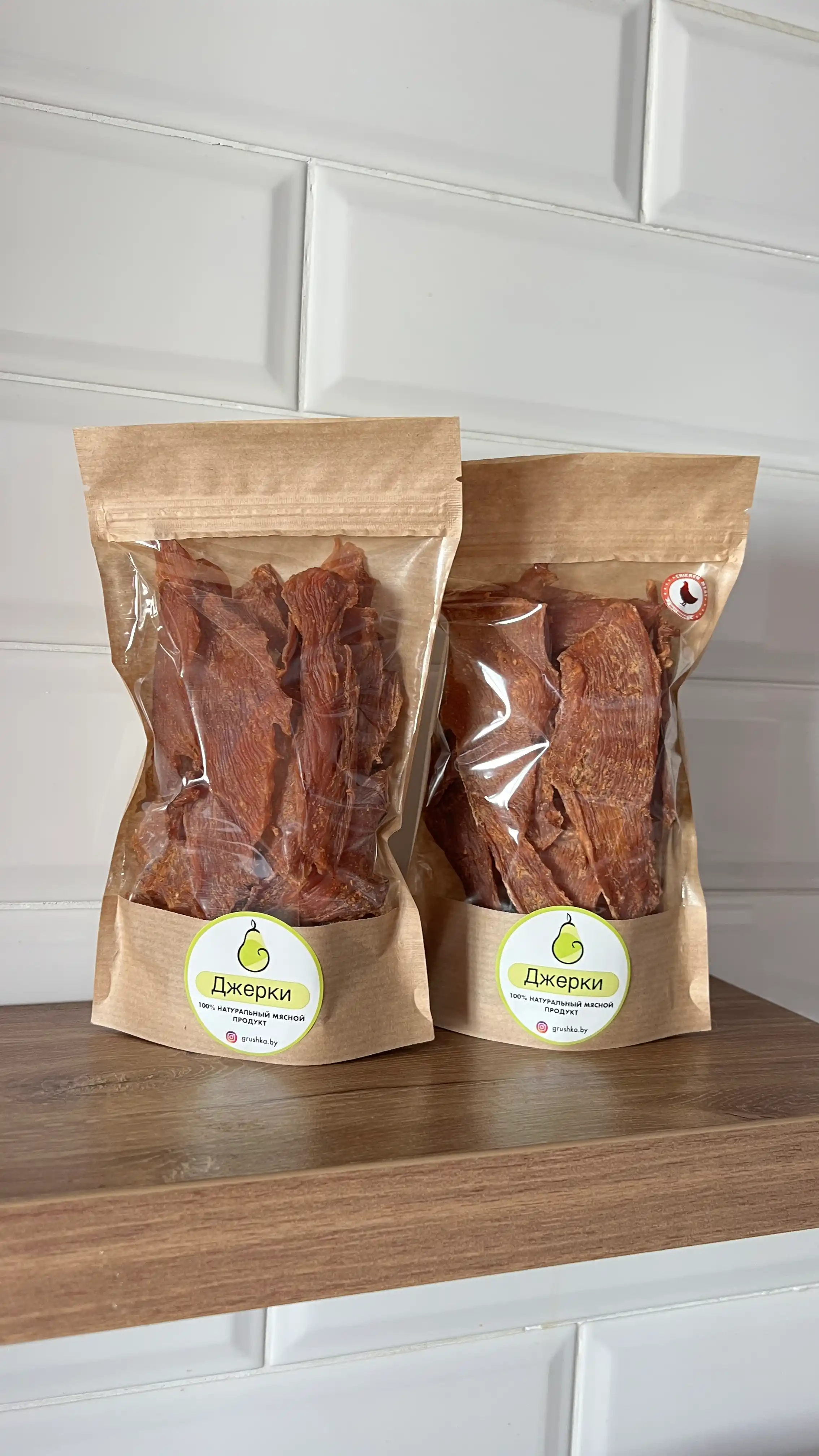 Куриные джерки — это тонко нарезанные полоски куриного филе, высушенные при низкой температуре до идеальной степени готовности. Они сохраняют натуральный вкус мяса, богаты белком и практически не содержат жира. Отличный вариант для перекуса в дороге, на тренировке или просто как полезная альтернатива чипсам.