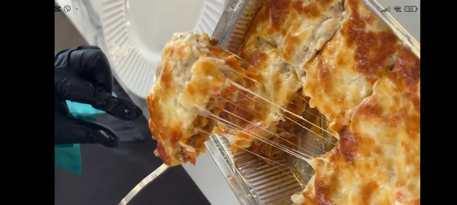 Состав: домашние листы лазанья, фарш, лук, морковь, молоко, мука, соль, итальянские травы, черный перец, сыр, томатная паста
