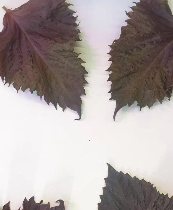 Крупный лист перилы в двух цветах. Японская кухня не обходится без этих листьев. Красный аромат. красивая фактура украсят мног блюд и коктейлей
