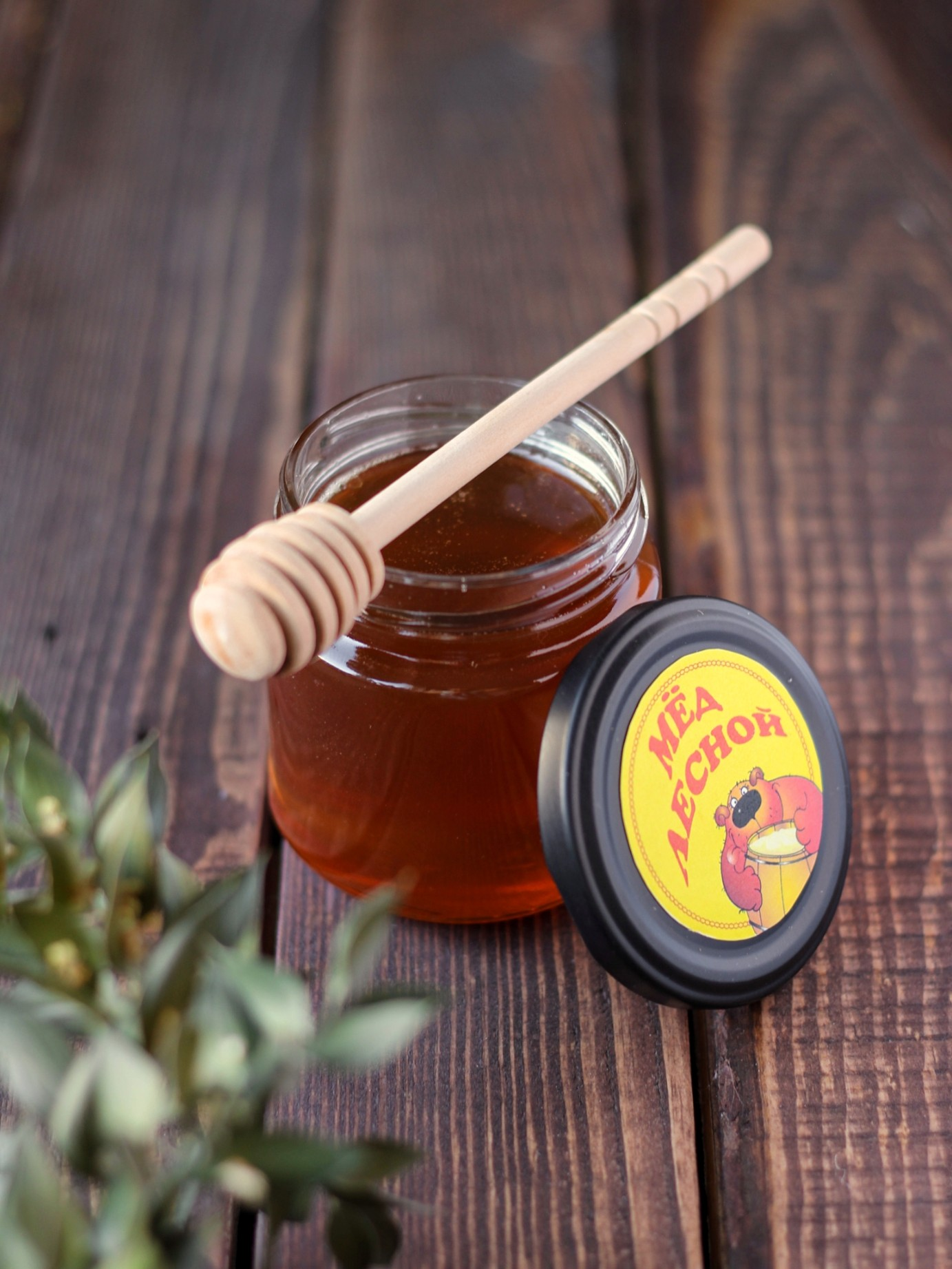 Наш лесной мёд собирается пчёлами в лесу, куда мы отвозим улья на период медосбора. Лесной мёд коричневого цвета с ярко-выраженным вкусом.
