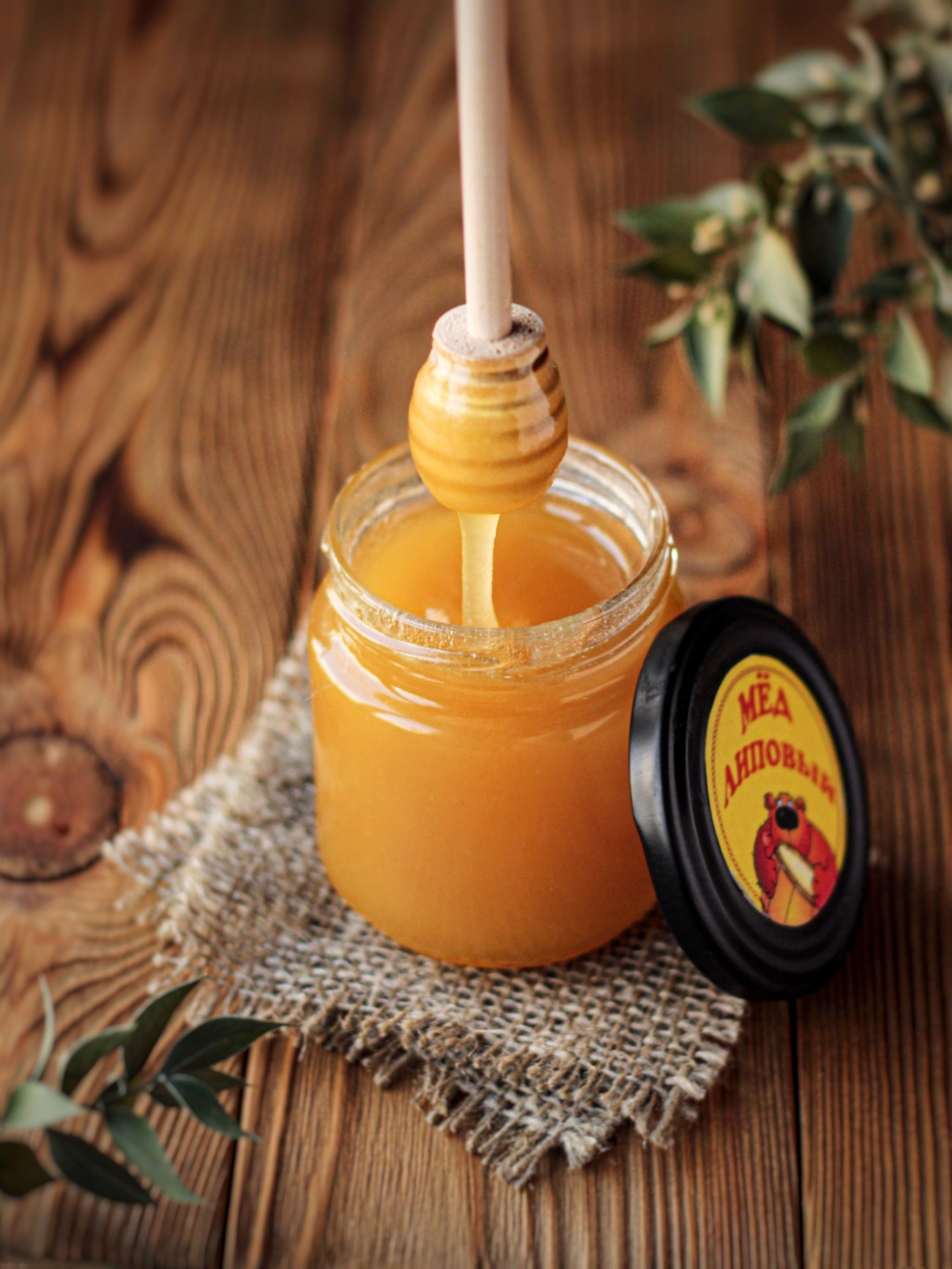 Липовый мёд собирается в период цветения липы в липовой роще. Имеет светло - жёлтый цвет и нежный вкус.