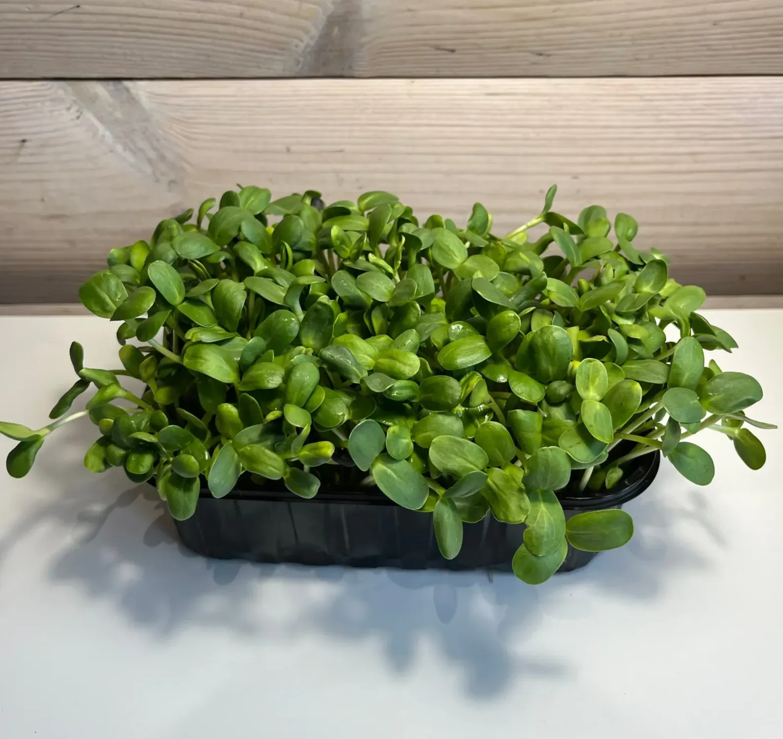 Растущая микрозелень - лоток (10*17см). Имеет легкий ореховый вкус с нотками солнечного семечка, добавляя блюдам теплоту и насыщенность.