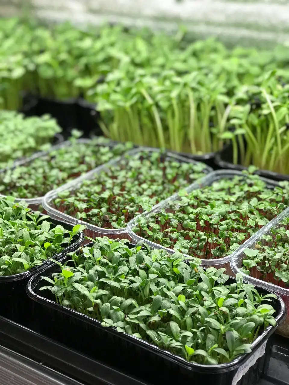 Ассортимент: — Редис розовый — Редис зелёный — Редис фиолетовый — Горчица — Брокколи — Руккола — Кресс-салат — Амарант — Подсолнечник — Горох — Люцерна — Клевер — Лен — Лук