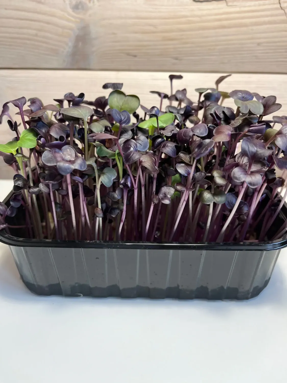 Растущая микрозелень - лоток (10*17см). Обладает легкой острой и сладкой ноткой, которая придает блюдам необычный вкусовой акцент с легким пикантным послевкусием редиса