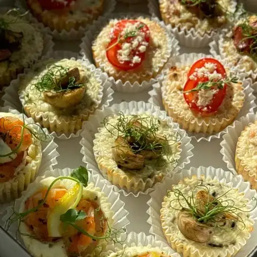 16 штук по 4 вида: С шампиньонами С беконом С форелью С креветками
