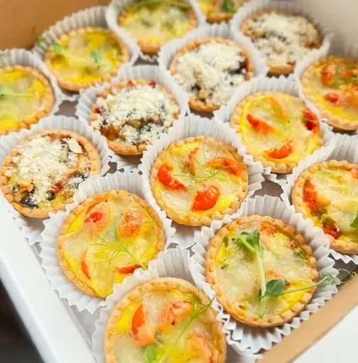 Мини-киши с форелью и брокколи Мини-киши помидоркой черри и моцареллой Мини-киши с шампиньонами и беконом