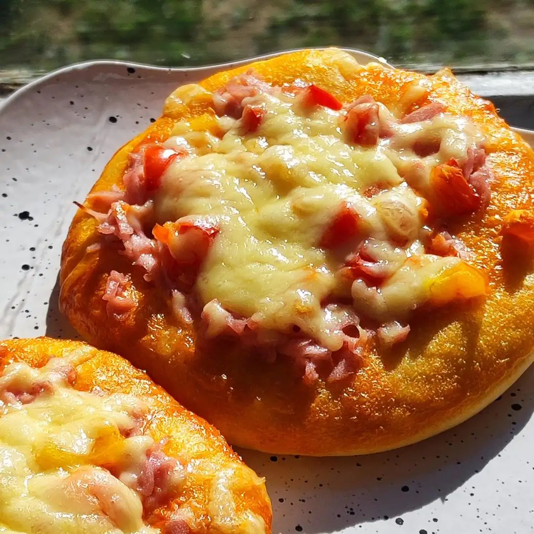 Мини-пиццы (дрожжевое тесто, майонез, кетчуп, ветчина, помидоры, сыр твердый). Цена указана за полуфабрикат*