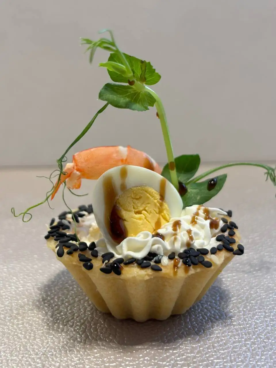 Тарталетка-мини с форелью: Тарталетка, творожный сыр, форель, огурец свежий, микрозелень Тарталетка с креветкой и перепелиным яйцом: Тарталетка средняя, творожный сыр, креветка, яйцо перепелиное, соус терияки, микрозелень Тарталетка с куриным муссом: Тарталетка средняя, куриный мусс из филе, чеснок, маринованный огурчик, сушеный хрустящий лук, микрозелень