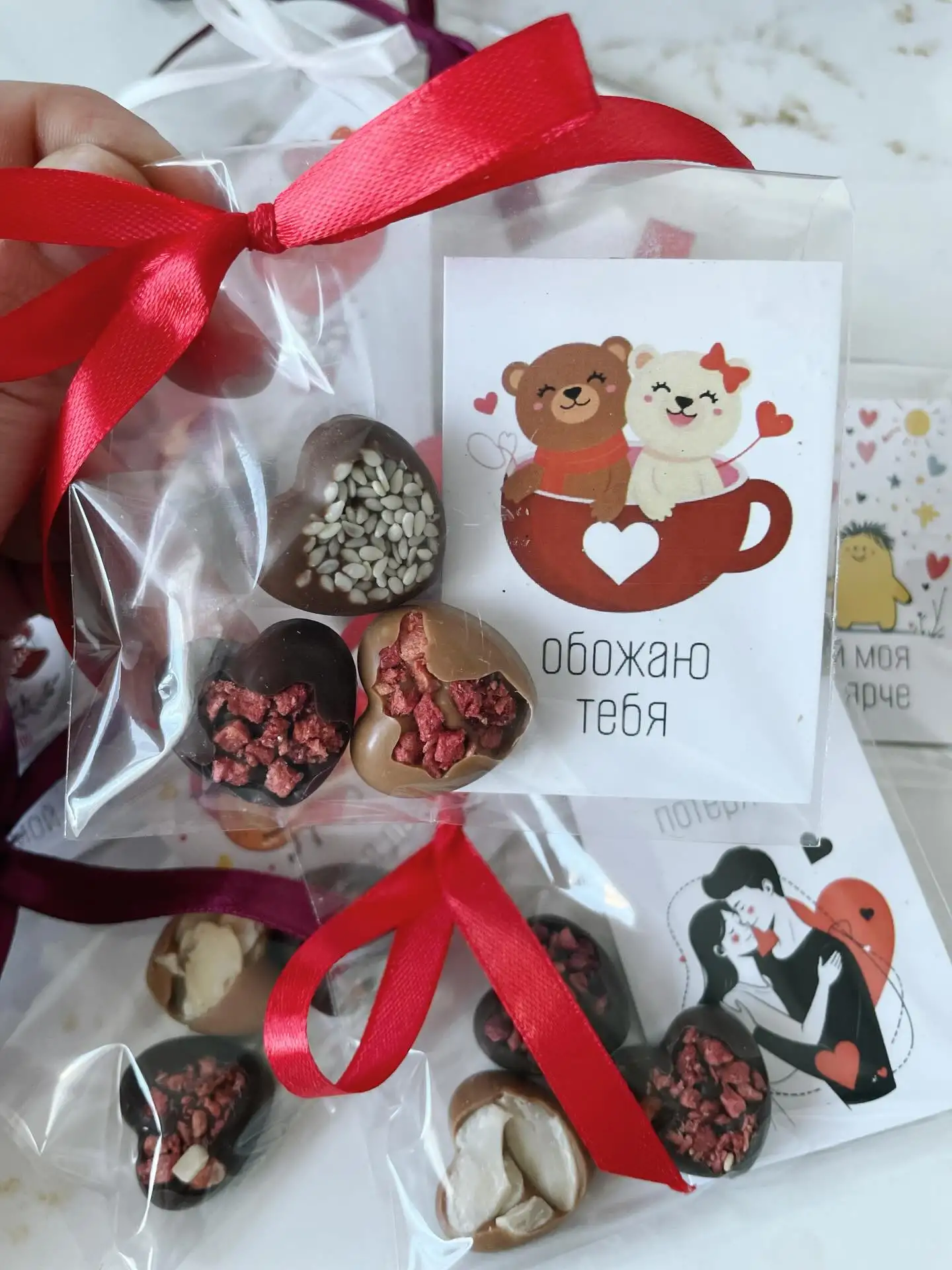Набор конфет ручной работы с наполнением — 3 шт. в наборе с открыткой (Шоколад: молочный, карамельный, белый, темный)