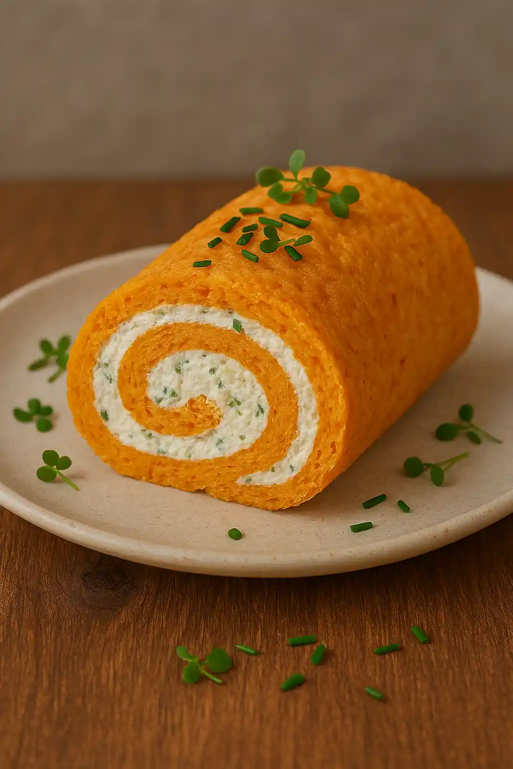 Морковный рулет, 600 г — нежный овощной рулет с ярким вкусом моркови и воздушной начинкой, лёгкая и полезная закуска.