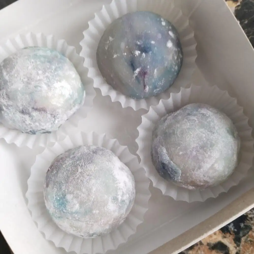 Мини моти (20-22 г) в наборе из 4 штук. Начинки могут быть разные. По умолчанию: шоколад/фундук, фисташка, малина, ягодный микс.