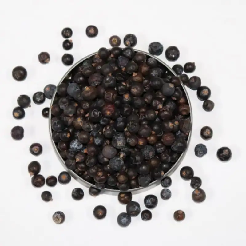 20 г Можжевельник имеет древнюю историю применения в народной медицине, бытовой санитарии, парфюмерии и даже в магических обрядах. Сегодня же плоды этого хвойного кустарника широко применяются в кулинарии, в основном в западно- и североевропейской кухне. Маринады с ягодами можжевельника и тушение с ними улучшают вкус крупной дичи. Их также добавляют в мясо домашней птицы, лучше всего можжевельник помогает раскрыться вкусовым качествам жирного мяса — гусю, свинине или жаркому из говядины или баранины. Пряность не только улучшает вкус копченого мяса и рыбы, а также увеличивает сроки хранения продуктов. Ягоды можжевельника используют при изготовлении различных прохладительных напитков, например кваса, пива, морса, киселя, при солении и мариновании продуктов. Эта приправа замечательно сочетается с кислой капустой, чесноком, луком. Из зрелых сухих плодов готовят можжевеловый сахар. Также используются при изготовлении сладкого сиропа, мармелада, пряников и коврижек.