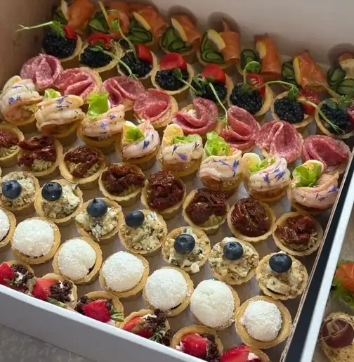 С форелью С креветкой С икрой С салями С сыром с плесенью С вялеными томатами С кокосом С клубникой и сладким перцем