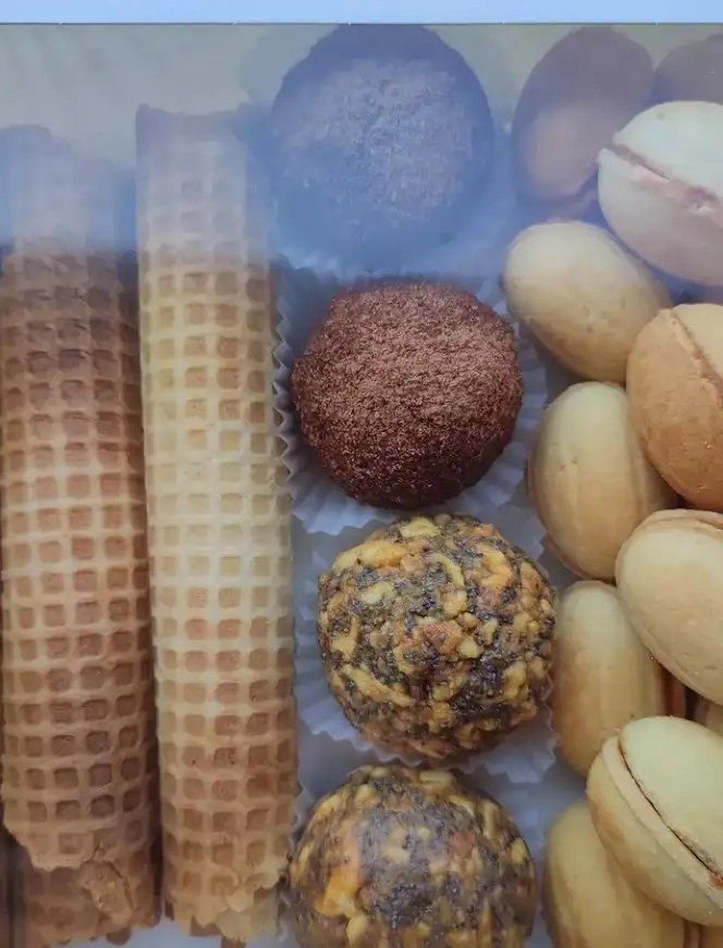 Набор орешков со сгущенкой и трубочек со сгущенкой, а также пирожное картошка.