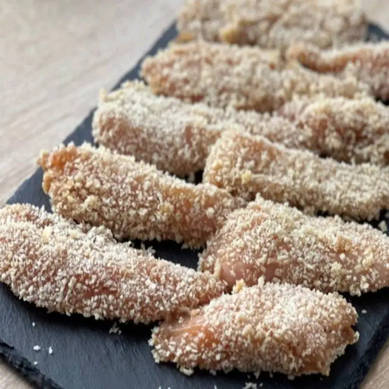 Наггетсы куриные (филе куриное, сухари Панко, соевый соус, соль, специи, яйца куриные).