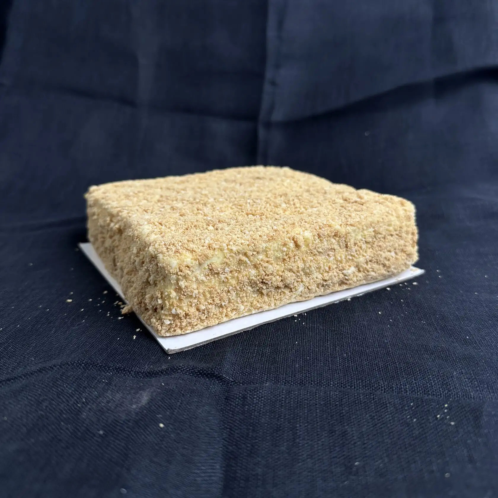 Описание: один из самых известных и любимых десертов русской и французской кухни, отличающийся множеством тонких слоёв, нежным заварным кремом и хрустящей текстурой. Состав: масло сливочное, мука, коньяк, белый шоколад 33% без сахара, сливки 33%, молоко, ваниль натуральная, желатин. Вес: 500 г Способ приготовления: блюдо полностью готово к употреблению.