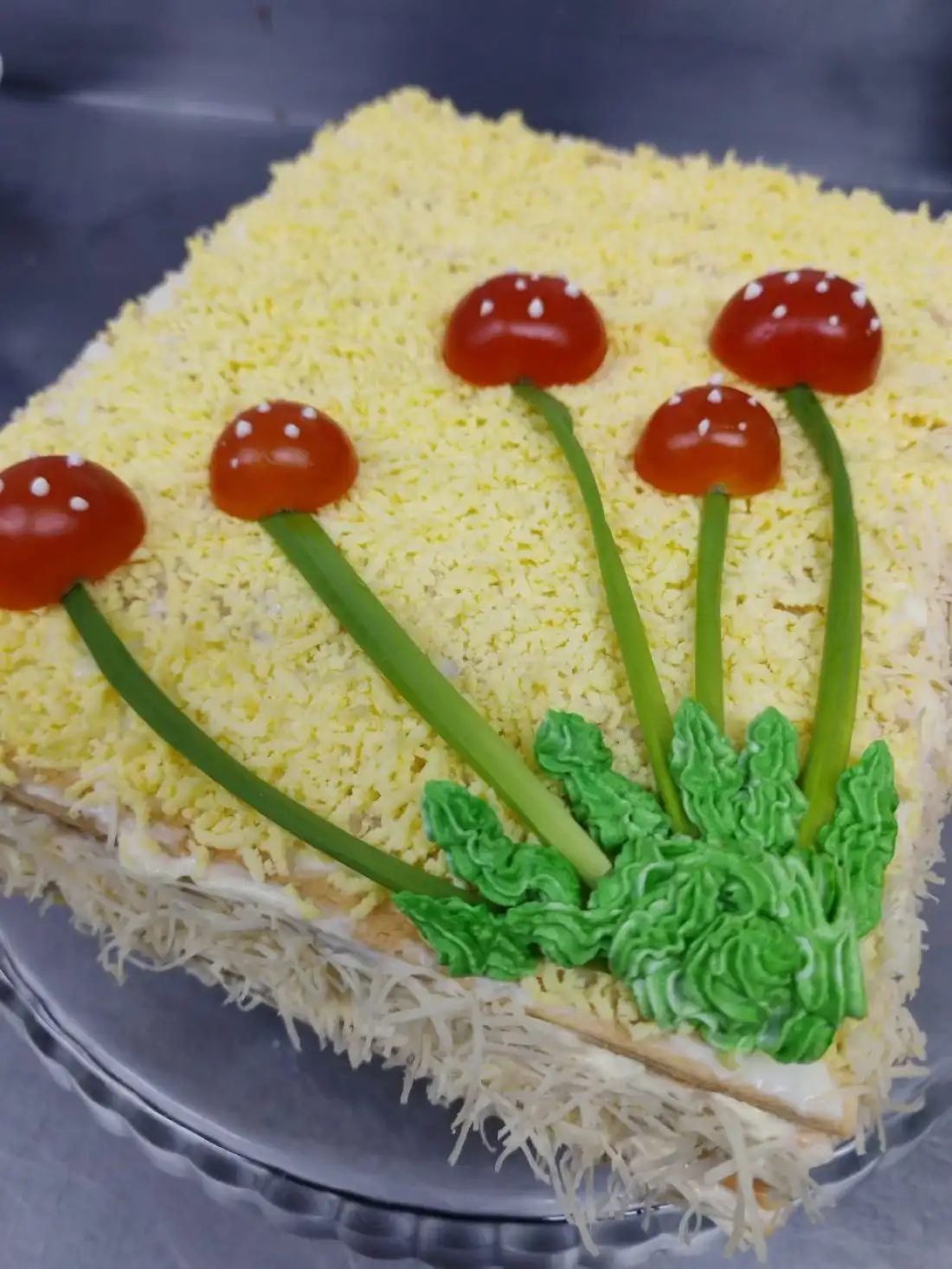 — Корж из слоеного теста — Морковь — Лук — Тунец консервированный — Яйцо — Сыр твердый — Майонез