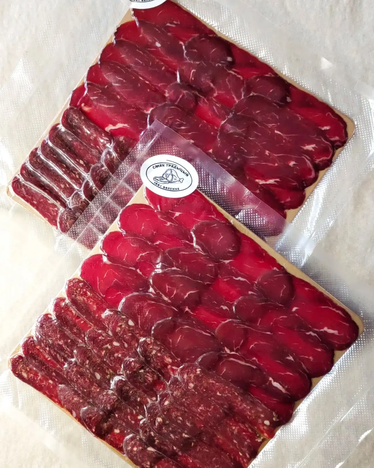 В составе: ✓ говядина сыровяленая ✓ колбаса Луканка