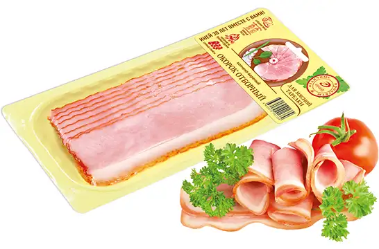 Состав: свинина, вода питьевая, нитритно-посолочная смесь (соль, фиксатор окраски (нитрит натрия)), крахмал картофельный, регуляторы кислотности (пирофосфаты, трифосфаты), декстроза, ароматизатор, стабилизатор (ксантановая камедь), усилитель вкуса и аромата (глутамат натрия).