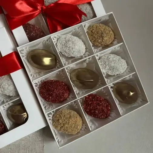 -классические со сгущенкой -шоколадная паста и фундук -кокосовый крем -кофейный крем с миндалем -клубничный ганаш и клубничное конфи