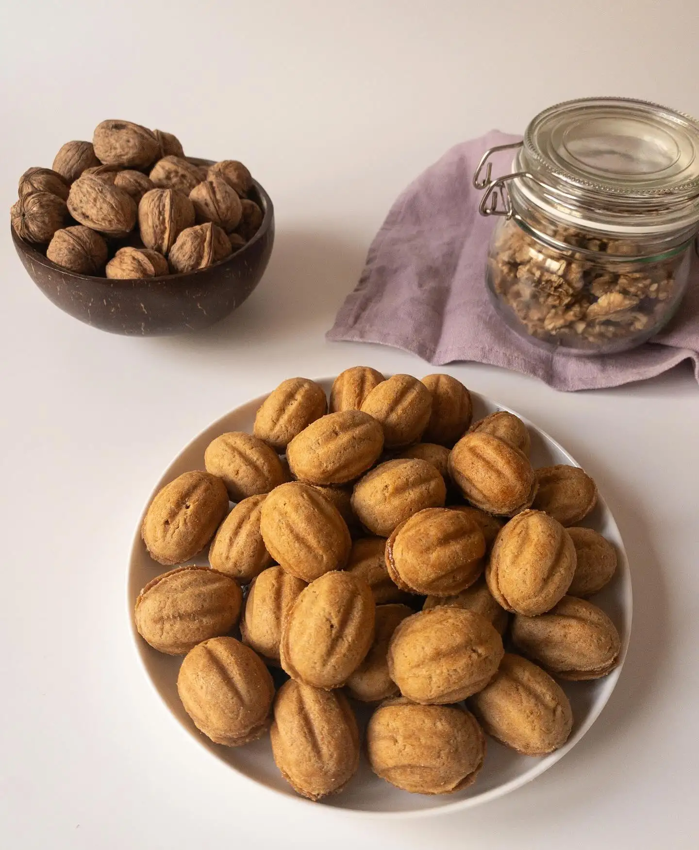 Миндальная паста, смесь без глютена, финики, кокосовый сахар, кокосовое молоко, вег.сливочное масло, сироп топинамбура, грецкий орех, разрыхлитель, экстракт ванили.