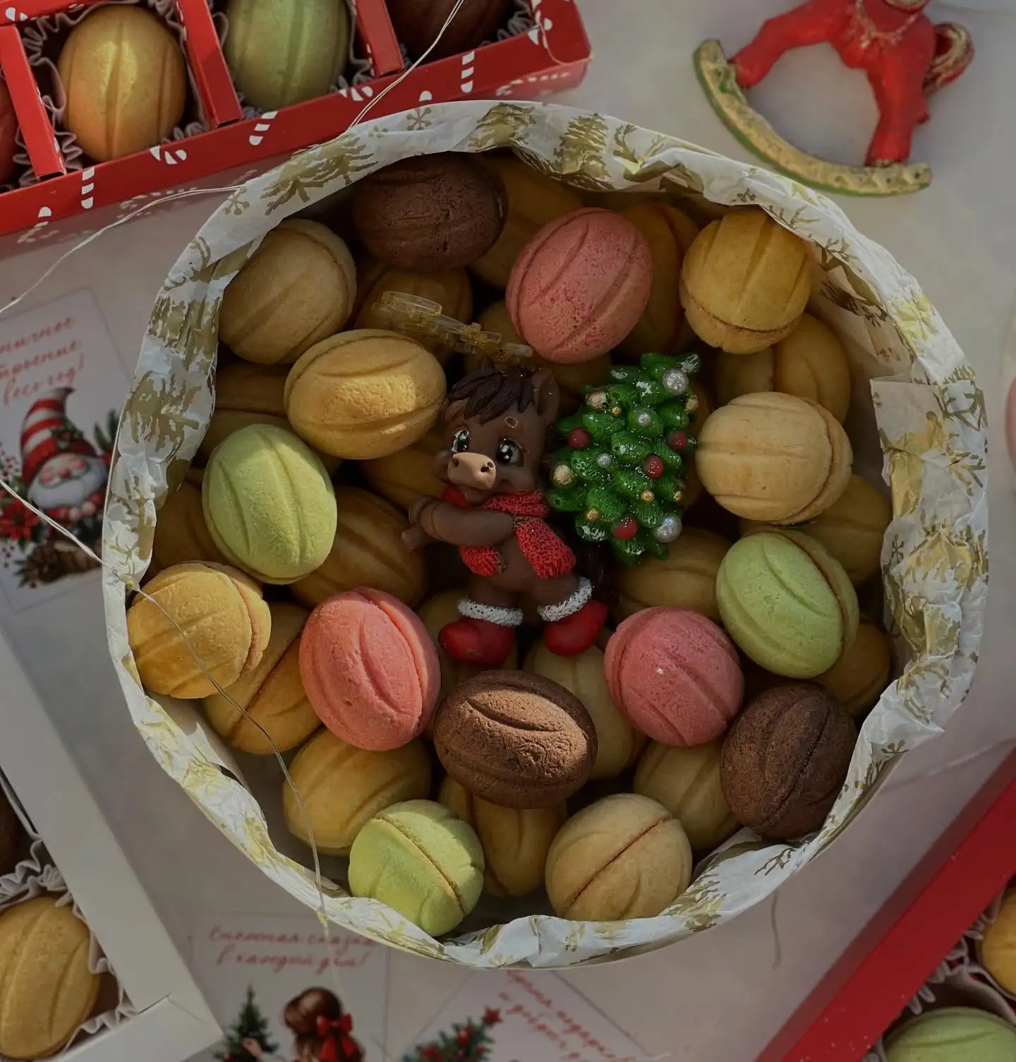 В каждом наборе есть начинки: * Ванильные сливки; * Вишнёвочка; * Фисташка-малина; * Лимон-мак; * Капучино.