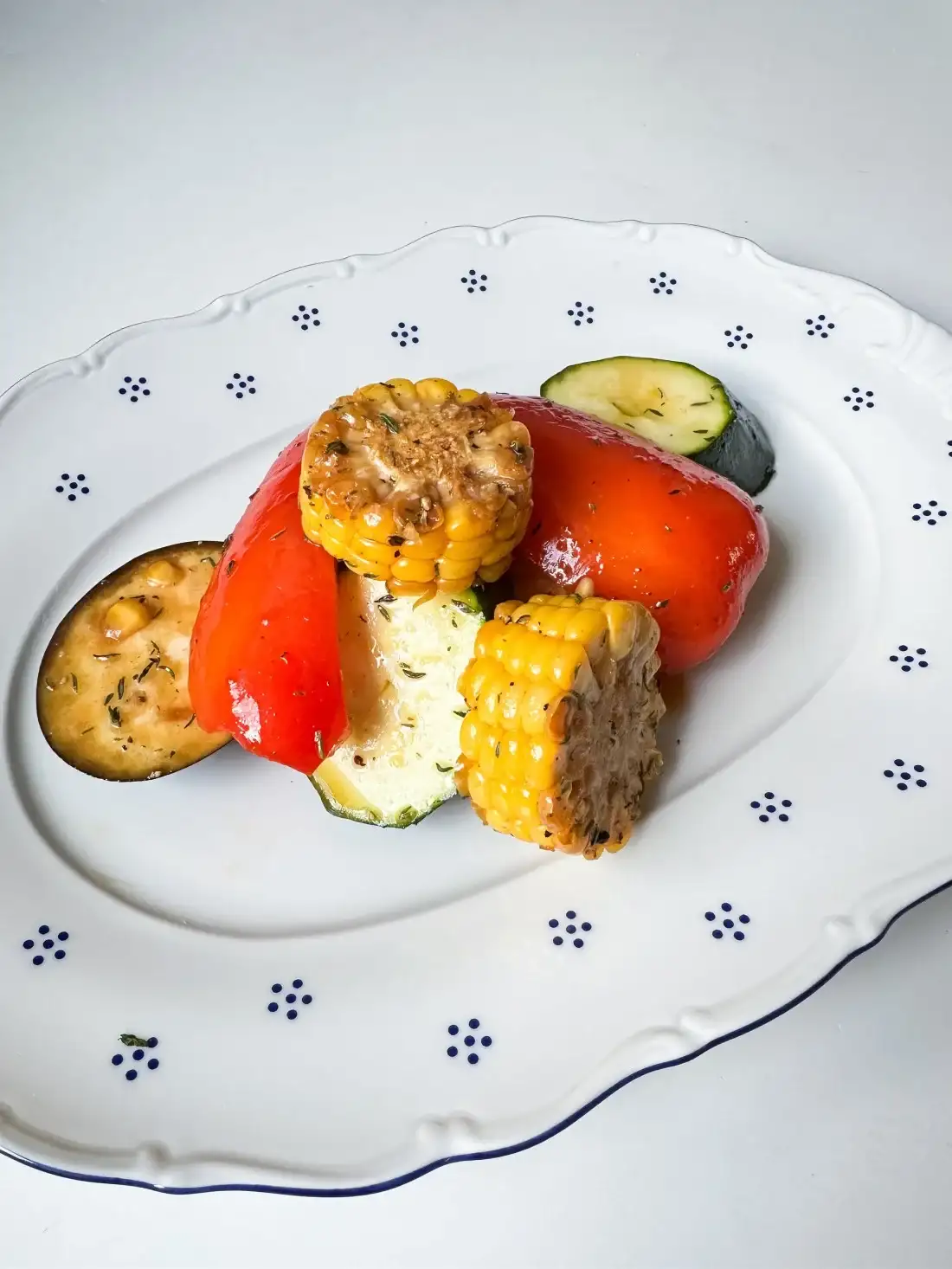 Состав: Баклажан, цукини, перец болгарский, шампиньоны, соль, перец черный, чесночное масло, соевый соус, тимьян.