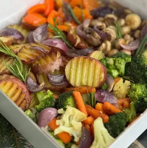 Картофель,морковь, шампиньоны,цветная капуста, брокколи , болгарский перец, лук красный