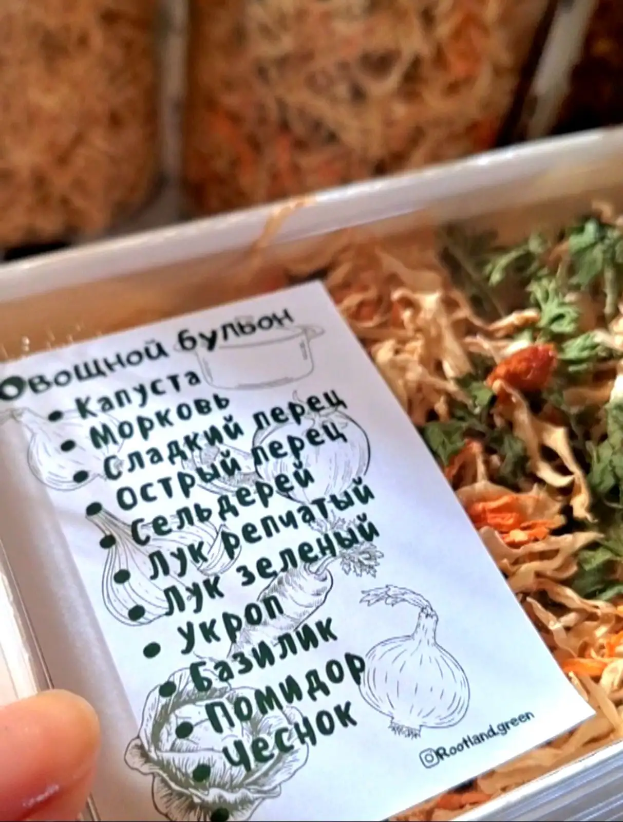 Овощной бульон: сушёные фермерские овощи, зелень, пряные травы. Бокс 450 мл рассчитан на 4 литра воды или мясного бульона для приготовления ароматного овощного супа. Состав: капуста, морковь, сладкий перец, острый перец, помидор, сельдерей, петрушка, укроп, базилик, зелёный лук, репчатый лук, чеснок, орегано. Состав может меняться по вашему желанию.
