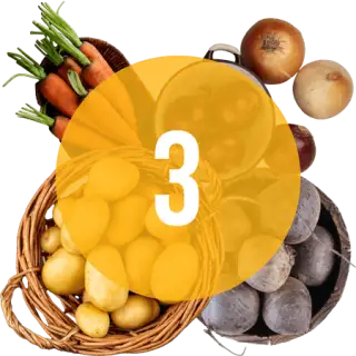 Большой овощной набор состоящий из трёх мешков картошки по 40 кг каждый, сетки лука — 15 кг, сетки моркови — 15 кг, сетки свёклы — 15 кг.