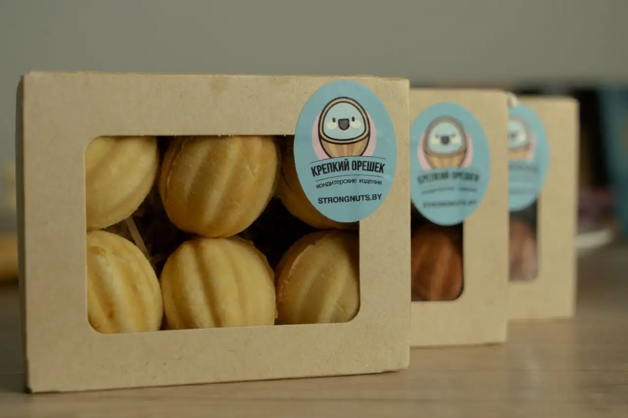 Вес — 22 г. Начинки на выбор: 1. Орешек со сгущенкой «Классический» 2. Орешек со сгущенкой и арахисом 3. Орешек со сгущенкой и грецким орехом 4. Шоколадный орешек со сгущенкой и фундуком 5. Орешек со сгущенкой и кешью 6. Шоколадный орешек со сгущенкой 7. Орешек со сгущенкой и семенами подсолнечника 8. Орешек со сгущенкой и вкусом кофе-корица 9. Орешек со сгущенкой и вкусом соленая карамель 10. Орешек со сгущенкой и вкусом тирамису