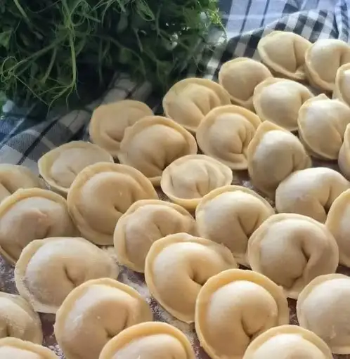 Состав: мука пшеничная, соль, яйца, вода, растительное масло, фарш свининой, лук репчатый, специи